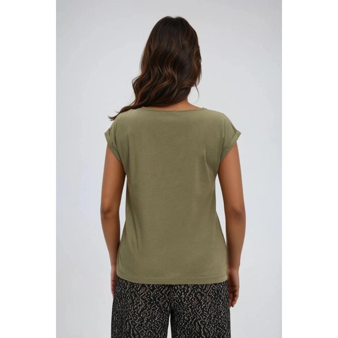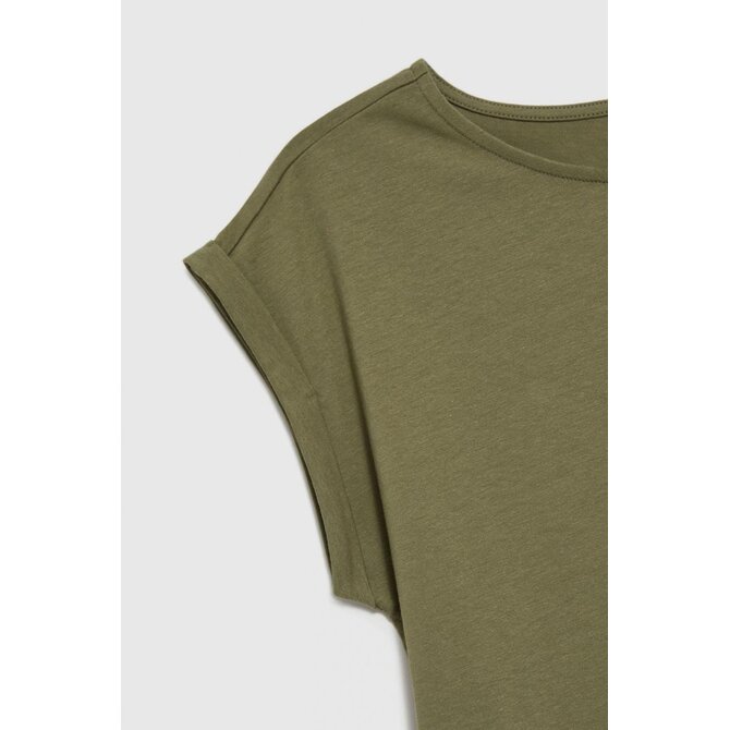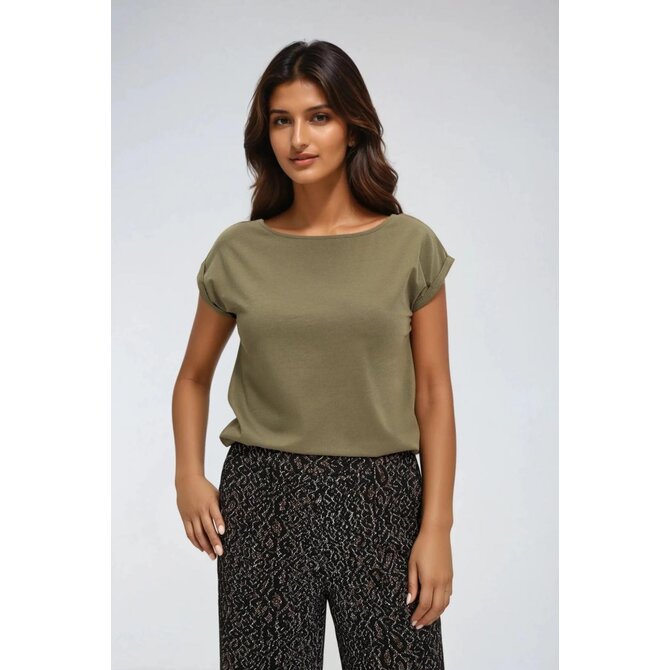 95% BAVLNA, 5% ELASTAN Tato dámská halenka v módní olivově zelené barvě je ideální pro ženy, které si cení pohodlí a nadčasové elegance. Její hladká, nevzorovaná struktura a volný střih se spuštěnými rameny zajišťují volnost pohybu a celodenní pohodlí. Lodičkový výstřih decentně zdůrazňuje dekolt a dodává vzhledu nádech lehkosti a ženského šarmu. Halenka je vyrobena z měkké, přírodní bavlny, která umožňuje pokožce dýchat a je pohodlná na nošení i v teplých dnech. Perfektní volba pro každodenní výlety, schůzky s přáteli i neformální schůzky v práci.