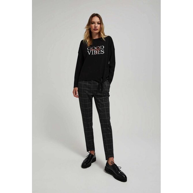 100% BAVLNA Halenka je úžasnou kombinací pohodlí a stylu. Vyrobeno z nejkvalitnější bavlny, zajišťuje pohodlí po celý den. Jeho černá barva a hladká textura podtrhují eleganci a nadčasovost tohoto modelu. Halenka má navíc jedinečný potisk, který jí dodává moderní charakter. Zavazování ve spodní části umožňuje upravit obvod, takže si jej můžete přizpůsobit svým preferencím a stylingu. Dlouhé rukávy a kulatý výstřih dodávají halence na ženskosti a jemnosti. Volný střih umožňuje volnost pohybu, což je v každodenním životě nesmírně důležité. Halenka je perfektní volbou pro mnoho příležitostí. Dá se nosit na obchodní schůzky, rande nebo každodenní výlety. Hodí se k mnoha šatníkům, jako jsou kalhoty, sukně nebo džíny. Lze jej kombinovat jak s elegantními doplňky, tak s ležérními akcenty. Ať už dáváte přednost klasickému nebo modernějšímu stylu, tato halenka se jistě stane základem vašeho šatníku.