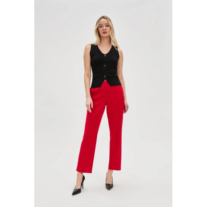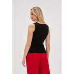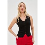 50% VISKÓZA 28% POLYESTER 22% POLYAMID Dámská svrchní halenka v černé barvě vyrobená z vysoce kvalitní strukturální tkaniny žebrovaného stylu. Vyrobeno z přírodní viskózy, zajišťující pohodlí při nošení a měkkost materiálu. Model s ramínky, výstřihem do V, ozdobným spodkem a knoflíky, který dodává eleganci a originalitu. Ideální na večery, rande nebo setkání s přáteli. Dokonale se hodí k tužkové sukni nebo vypasovaným kalhotám a vytváří stylový a šik. Můžete jej také spárovat s džínami a podpatky pro neformálnější vzhled.