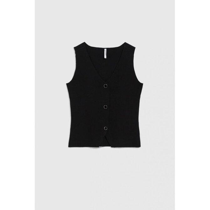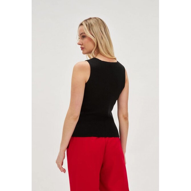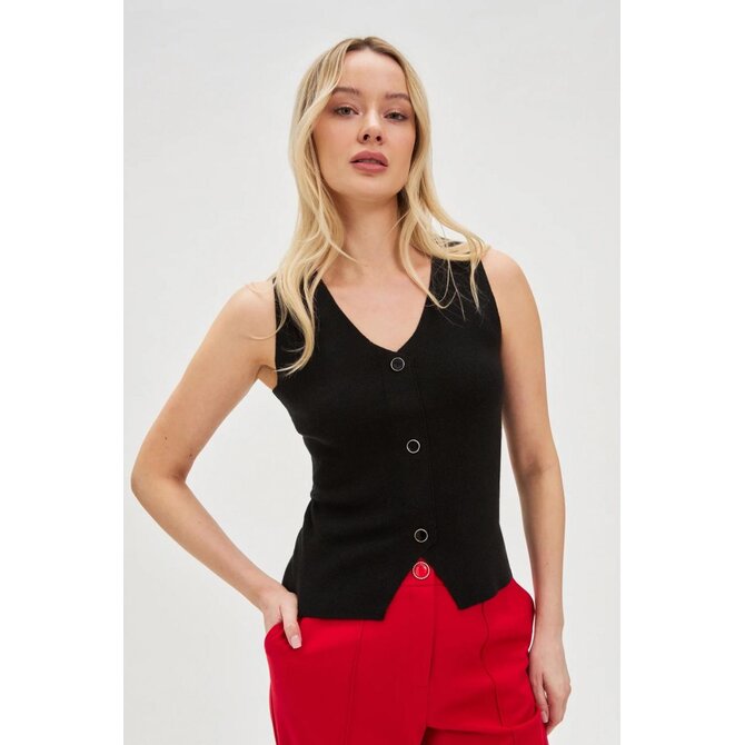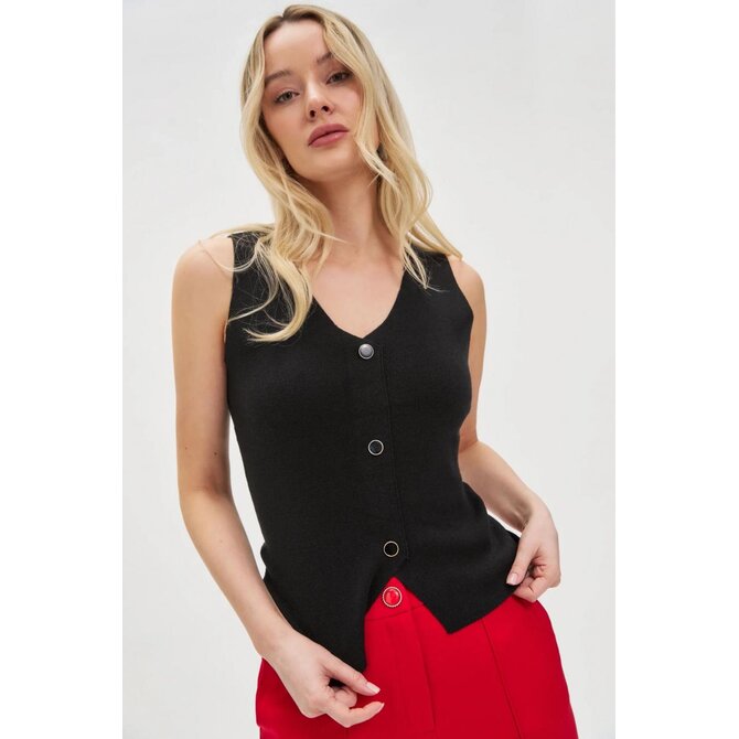 Vypasovaný top s ozdobnými černými knoflíky