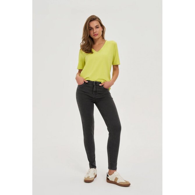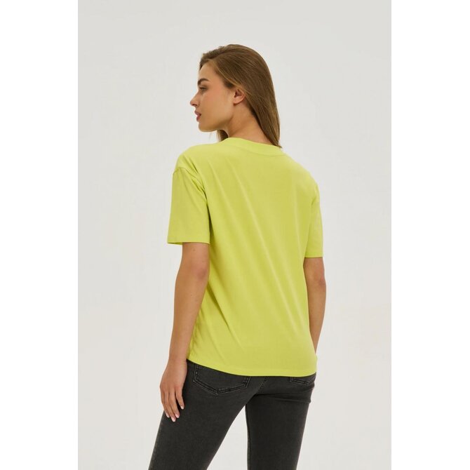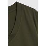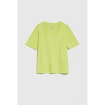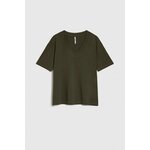95% BAVLNA, 5% ELASTAN Tato zelená halenka s volným střihem je ideální pro milovnice pohodlného a módního stylu. Její hladká textura a absence vzoru ji činí v souladu s nejnovějšími minimalistickými trendy a dokonale zdůrazňují svěžest a přirozenost. Výstřih do V decentně zeštíhluje krk, zatímco krátké rukávy zaručují pohodlí i v teplejších dnech. Přírodní bavlna poskytuje prodyšnost a hebkost, což umožňuje pokožce dýchat po celý den. Toto tričko je ideální pro každodenní nošení – do práce, na schůzky s přáteli nebo na víkendové výlety. Dobře se hodí k džínům, látkovým kalhotám, kraťasům a lehké sukni. Vytvoří vynikající základ pod sako nebo kardigan a umožní vám vytvořit si s ním řadu stylových outfitů.