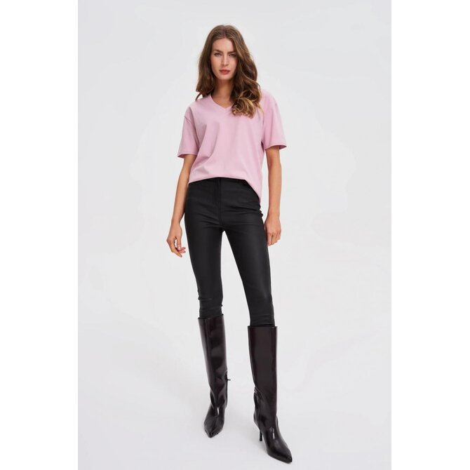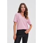 95% BAVLNA, 5% ELASTAN. Tato růžová halenka volného střihu zaujme svým decentním, hladkým, nevzorovaným povrchem a všestrannými krátkými rukávy. Výstřih do V opticky zeštíhluje krk a dodává každému outfitu nádech lehkosti. Přírodní, měkká bavlna zajišťuje celodenní pohodlí a prodyšnost, což zaručuje pohodlí i v teplejších dnech. Je to perfektní volba pro každodenní nošení, setkání s přáteli nebo víkendové aktivity. Toto tričko se dobře hodí ke klasickým džínům, midi sukním, kraťasům nebo lněným kalhotám. Je perfektní volbou pro ležérní outfity a jako základní vrstva pod sako nebo kardigan.