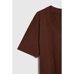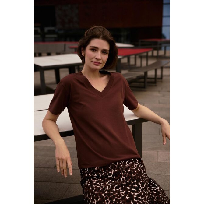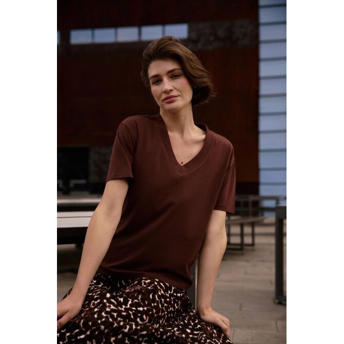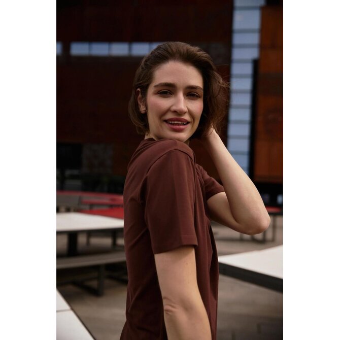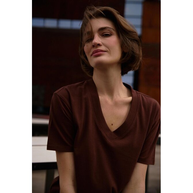 95% BAVLNA, 5% ELASTAN. Tato hnědá halenka s hladkou texturou přitahuje pozornost svým minimalistickým designem a všestranností. Volný střih zajišťuje volnost pohybu a pohodlí po celý den, zatímco krátké rukávy jsou ideální pro teplejší dny. Výstřih do V decentně zdůrazňuje krk a dodává halence lehký a ženský nádech. Přírodní, měkká bavlna zaručuje příjemný pocit na pokožce a pohodlí i při intenzivní aktivitě. Ideální pro každodenní nošení, procházku městem nebo setkání s přáteli. Hodí se k džínům, kraťasům nebo midi sukni. Skvěle se hodí i jako základ pod sako nebo svetr a vytváří tak stylový a ležérní vzhled.