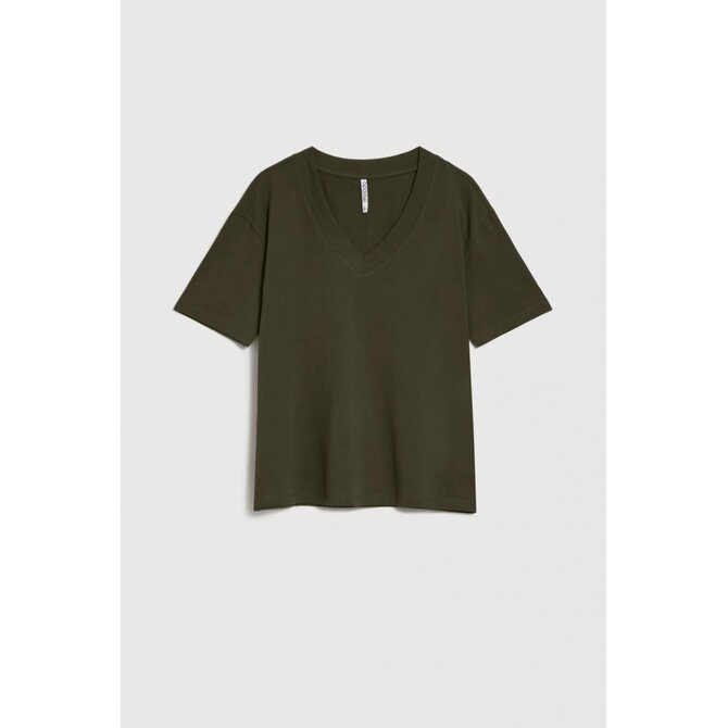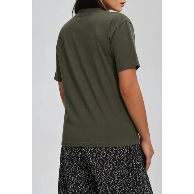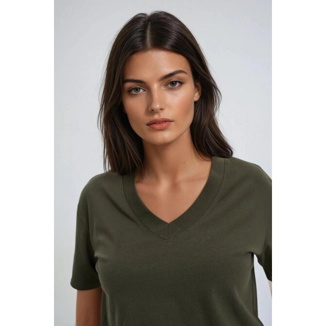 95% BAVLNA, 5% ELASTAN Tato olivově zelená halenka zaujme svou jednoduchostí a všestranností. Hladká textura a volný střih zaručují volnost pohybu a celodenní pohodlí. Výstřih do V decentně zdůrazňuje krk a krátké rukávy činí z tohoto kousku ideální volbu pro teplejší dny. Přírodní bavlna zajišťuje prodyšnost a příjemný pocit na pokožce. Je to perfektní volba pro každodenní nošení, ať už do práce nebo na setkání s přáteli. Perfektně se hodí k džínům, midi sukni nebo kraťasům. Hodí se také dobře jako základní vrstva pod sako nebo kardigan a vytváří tak pohodlné a stylové ležérní outfity.