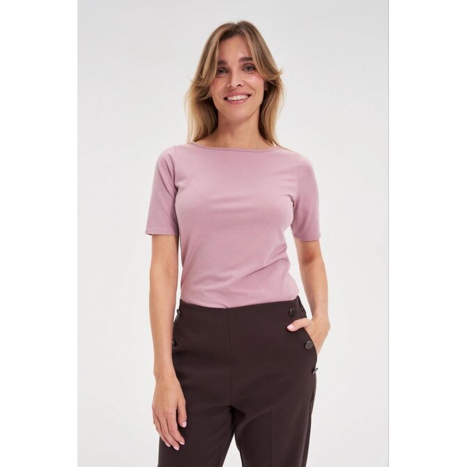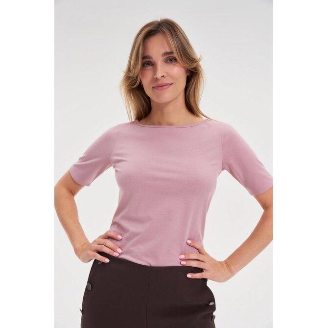 95% BAVLNA, 5% ELASTAN Toto růžové tričko s úzkým střihem je nezbytností v šatníku každé ženy. Jeho hladký povrch a absence vzoru ho činí všestranným a nadčasově elegantním. Výstřih bateau decentně zdůrazňuje krk, zatímco krátké rukávy zaručují pohodlí v teplých dnech. Přírodní bavlna zajišťuje prodyšnost a měkkost, díky čemuž se tričko pohodlně nosí i celé hodiny. Toto tričko je ideální pro každodenní nošení, do práce nebo na schůzky s přáteli. Perfektně se hodí ke klasickým džínům, midi sukni nebo elegantním cigaretovým kalhotám. Dobře se hodí i pod sako nebo kardigan a vytváří tak stylové a ženské outfity.