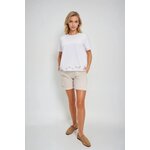 95% BAVLNA, 5% ELASTAN. Toto jednoduché hnědé tričko má kulatý výstřih, krátké rukávy a jednoduchý střih. Ve spodní části je vyšívaný květinový vzor. Je perfektním základem pro různé styly.