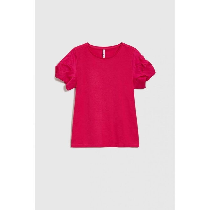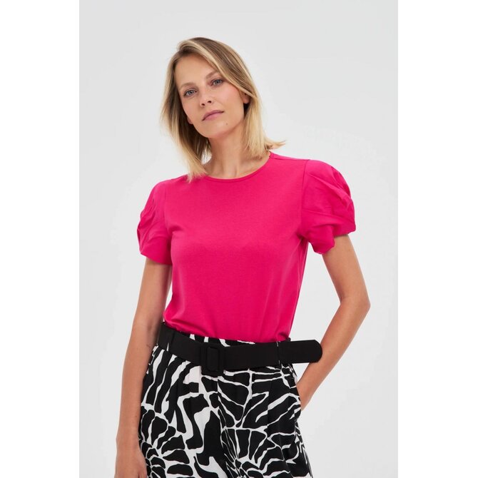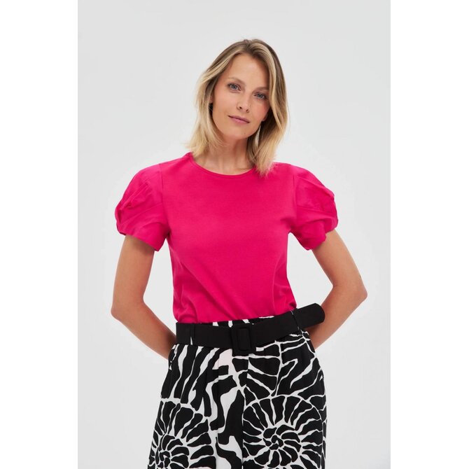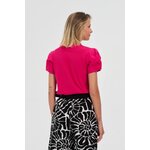95% BAVLNA, 5% ELASTAN RUKÁVY: 100% BAVLNA Růžová halenka s krátkým rukávem je návrh, který zaujme svou jednoduchostí a elegancí. Hladký povrch bez vzoru činí tento model perfektně zapadajícím do současných trendů a skvělým pozadím pro různé styly. Nafouklé ramena dodávají celému modelu jemnou ženskost a jemný charakter a přiléhavý střih krásně zdůrazňuje postavu a zajišťuje pohodlí při nošení po celý den. Kulatý výstřih decentně odhaluje krk a zajišťuje volnost pohybu. Kombinace přírodní bavlny s dalšími materiály zaručuje prodyšnost a odolnost. Ideální pro schůzky s přáteli, každodenní výlety nebo do práce v méně formálním prostředí. Perfektně se hodí ke klasickým džínům, pouzdrovým sukním a elegantním kalhotám.