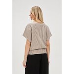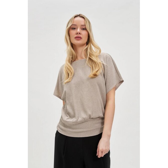 95% BAVLNA, 5% ELASTAN Béžová halenka bez vzoru, vyrobená z hladké bavlny. Model s krátkým rukávem a kulatým výstřihem, volného netopýřího střihu. Vyrobeno z bavlny. Vhodné pro mnoho příležitostí, ideální pro každodenní styling a letní výlety. Skvěle se hodí k džínům, šortkám, sukni nebo dokonce pod sako a dodá originální akcent každému stylu.