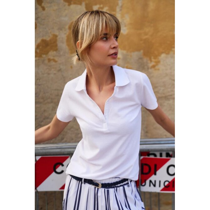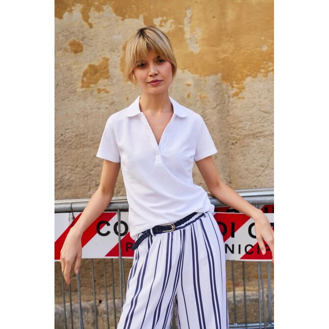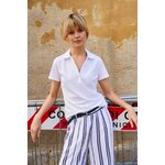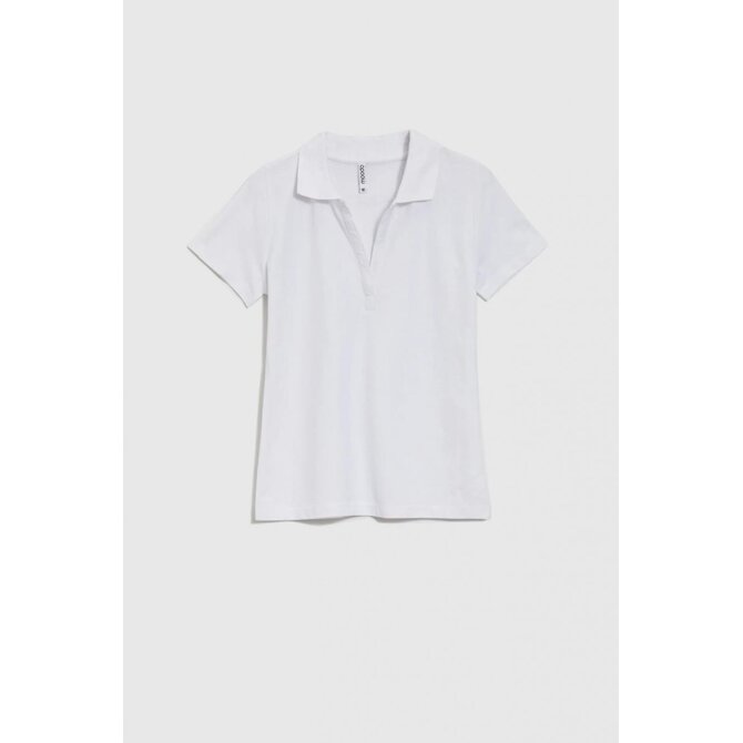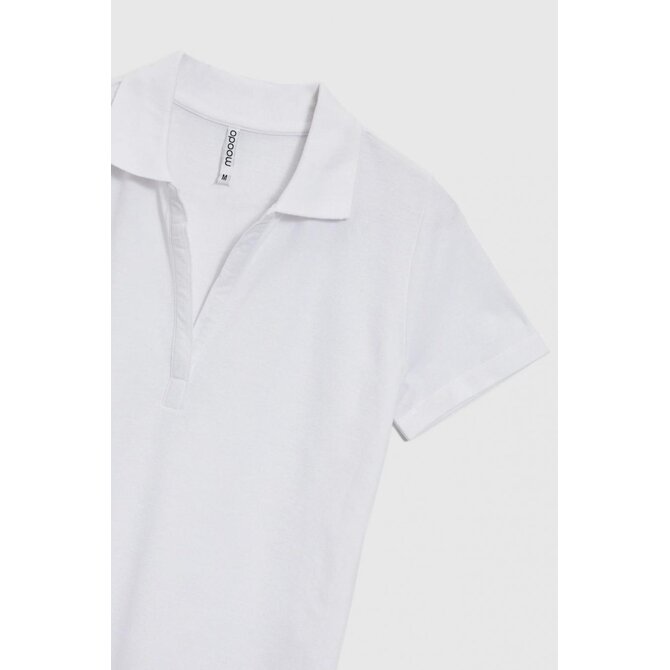 100% BAVLNA Dámská halenka v bílé barvě, bez vzoru, z hladké bavlny. Má límec a krátké rukávy, což zajišťuje pohodlné nošení. Produkt se přizpůsobí siluetě a zdůrazní její přednosti. Ideální pro každodenní použití, pro ležérní styling. Hodí se k džínám, sukním i pod sako, čímž vytváří univerzální a módní kombinace.