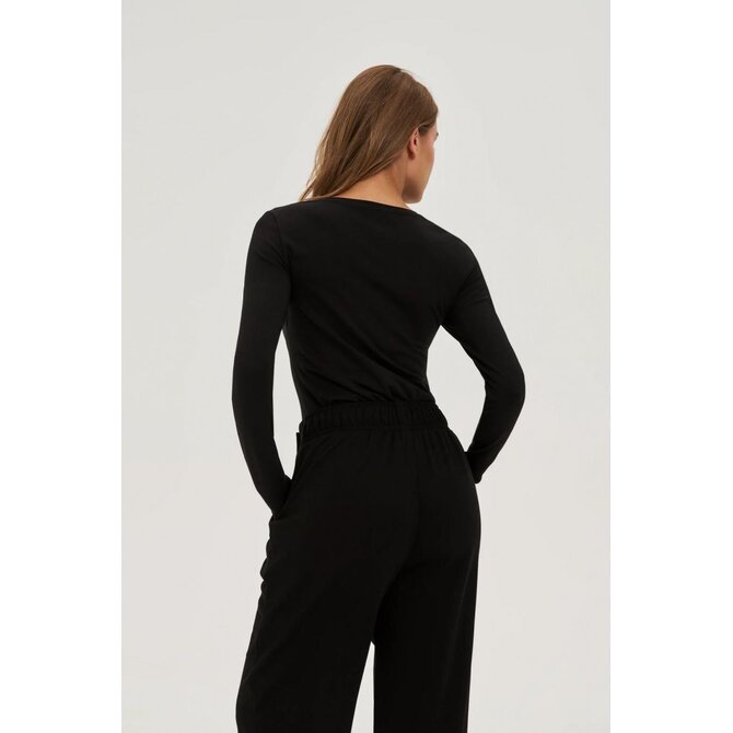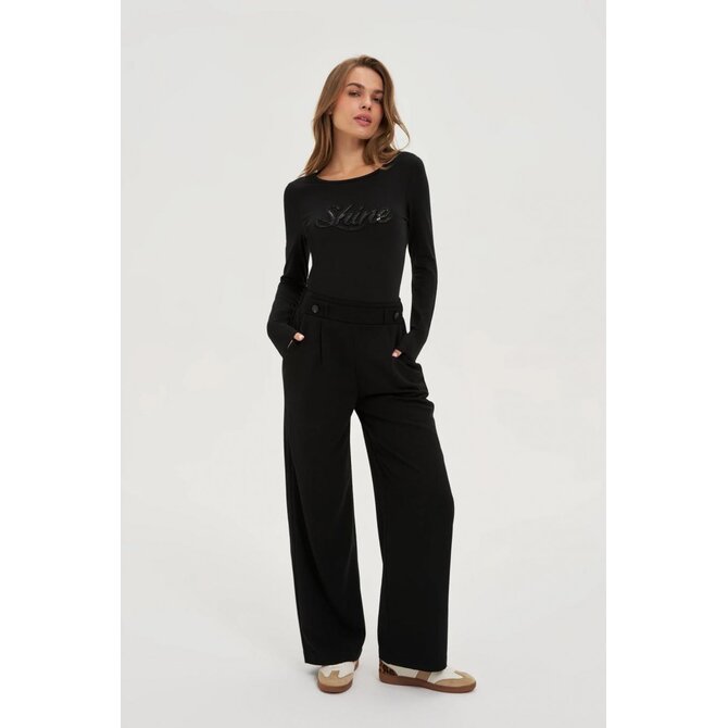 Tato černá halenka zaujme svou elegancí a jemností. Hladká textura, zvýrazněná jemnou výšivkou a ozdobnými korálky, dodá každému outfitu jedinečný nádech. Přiléhavý střih krásně zdůrazní postavu, zatímco dlouhé rukávy a kulatý výstřih zajistí celodenní pohodlí. Složení dominuje přírodní, měkká bavlna. Je ideální volbou pro obchodní schůzky, večerní zábavu nebo rodinné oslavy. Perfektně se hodí k elegantní sukni, klasickým kalhotám nebo džínům. Halenka je skvělým základem pro styling se sakem, kardiganem nebo motorkářskou bundou a zdůrazní jedinečný styl každé ženy.