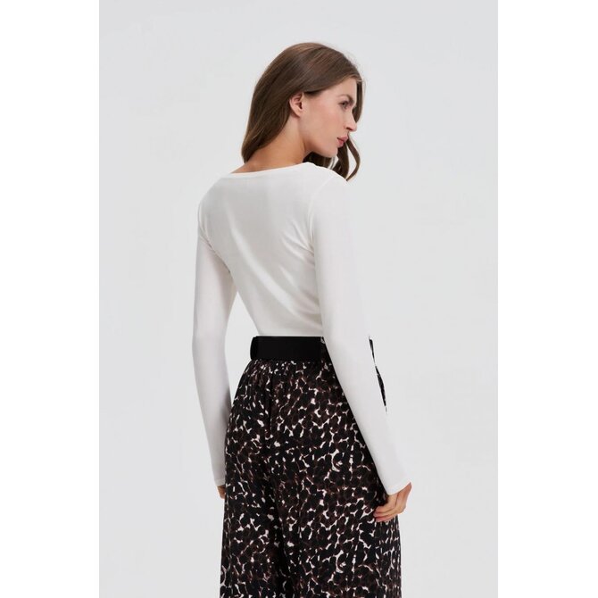 95% BAVLNA, 5% ELASTAN Tato ecru halenka je ideální pro ženy, které si cení klasické elegance a decentních detailů. Hladká tkanina pohodlně obepíná siluetu, zatímco přiléhavý střih zdůrazňuje postavu. Dekorativní výšivka a jemné korálky dodávají tomuto střihu nádech sofistikovanosti, díky čemuž je tento styl mezi dámskými halenkami jedinečný. Dlouhé rukávy a kulatý výstřih zajišťují pohodlí po celý rok. V materiálu dominuje přírodní bavlna, která zajišťuje odolnost a pohodlí. Je to perfektní volba pro obchodní schůzku, rodinný oběd nebo romantickou večeři. Perfektně se hodí k elegantním kalhotám, pouzdrové sukni nebo džínům pro ležérnější vzhled. Hodí se také pod sako a vytváří stylový základ pro každodenní i večerní outfity.