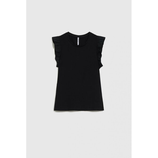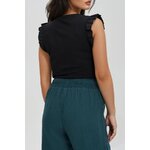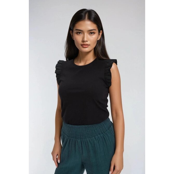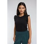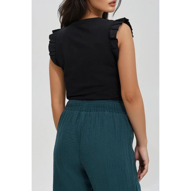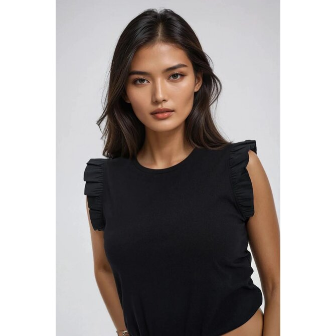 100% BAVLNA Černá halenka zaujme svým minimalistickým designem a decentními volánky a efektními řaseními, které dodávají stylu jedinečný charakter. Přiléhavý střih zdůrazňuje siluetu a kulatý výstřih se perfektně hodí pro každodenní nošení i elegantnější sety. Neobvyklý rukáv dodává originalitu a jemnou lehkost. Ideální volba pro schůzky s přáteli, do práce nebo večerní zábavu. Hodí se ke klasickým džínům, látkovým kalhotám, ale i k pouzdrovým nebo skládaným sukním. Perfektní řešení pro vytvoření módních a ženských stylů pro každou příležitost.