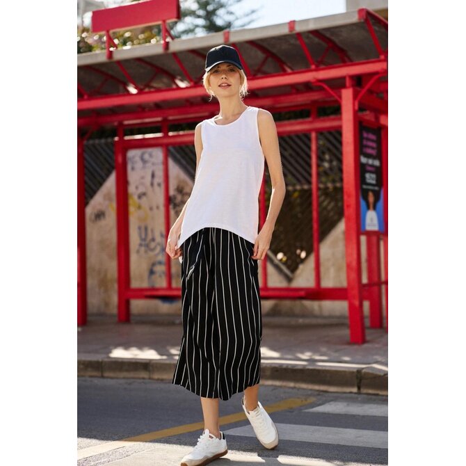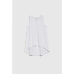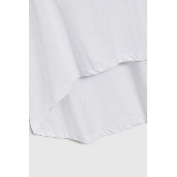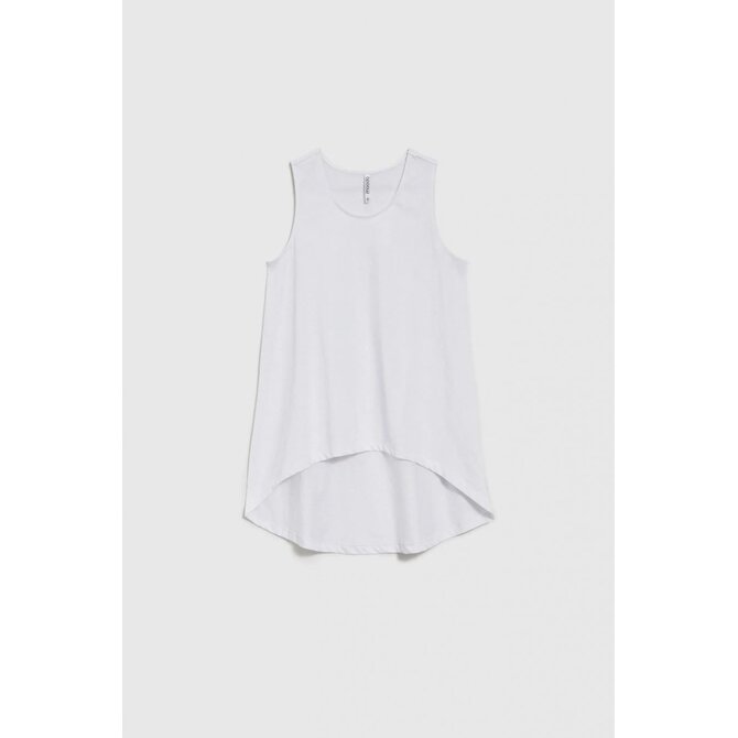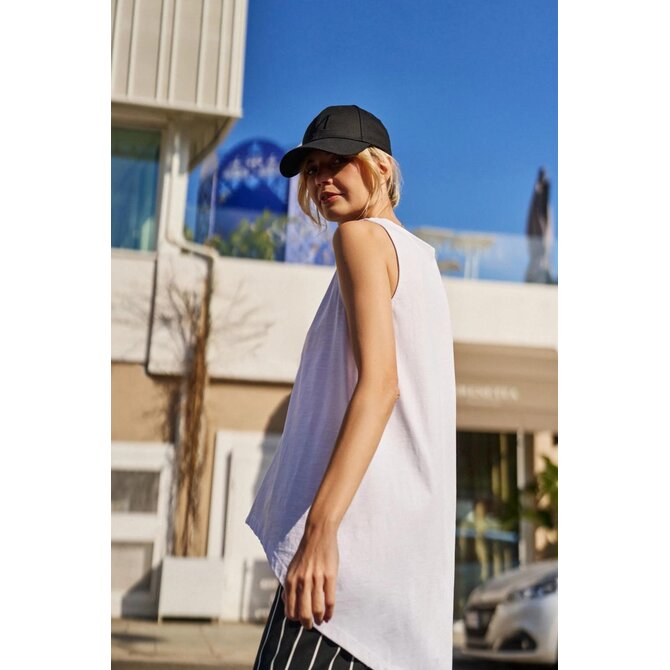 Toto bílé tílko ze 100% BAVLNY je ideální pro milovnice minimalismu a nadčasové elegance. Jeho prodloužený střih opticky zeštíhluje postavu a zajišťuje každodenní pohodlí. Hladká textura látky dodává topu čistý a svěží vzhled, zatímco kulatý výstřih dekolt decentně zvýrazňuje. Lehká, na dotek příjemná látka je vyrobena z prodyšné bavlny, která zajišťuje tepelný komfort a přirozený pocit na pokožce i v horkých dnech. Je to perfektní volba na letní výlety, setkání s přáteli, každodenní styling nebo pod sako do práce. Krásně se hodí k džínovým kraťasům, lněným kalhotám, elegantní midi sukni a klasickým cigaretovým kalhotám.