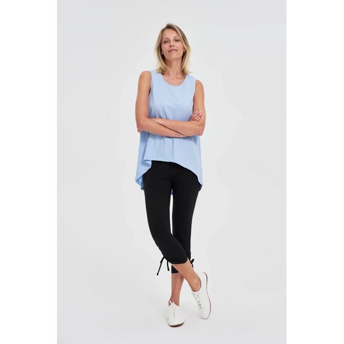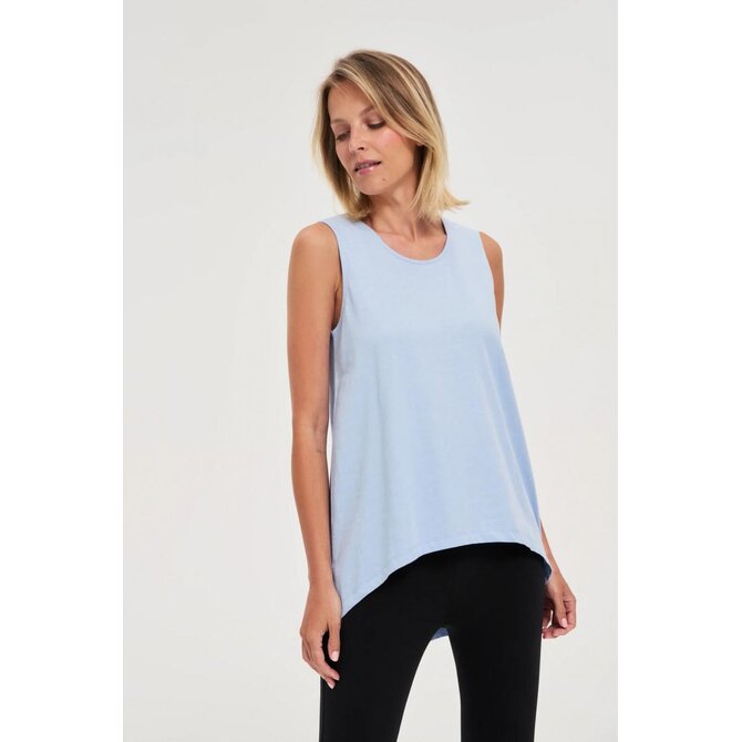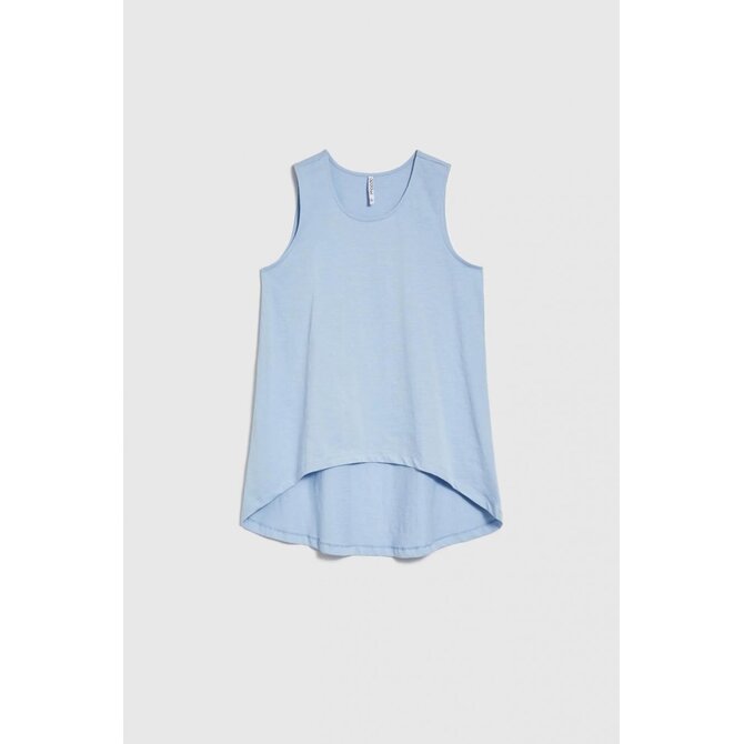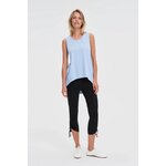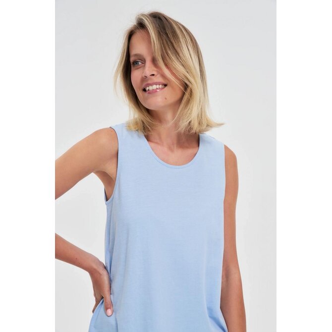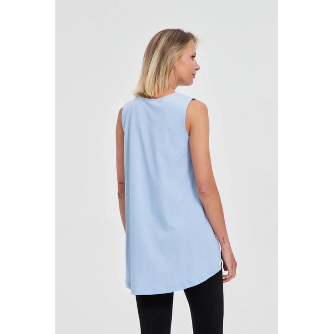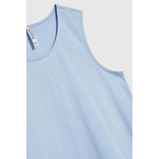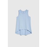 100% BAVLNA Tento modrý top je ideální pro ženy, které si cení minimalismu a pohodlí. Hladký, nevzorovaný povrch zdůrazňuje jeho univerzální, nadčasový charakter, zatímco protáhlý design opticky zeštíhluje siluetu. Kulatý výstřih decentně zvýrazňuje krk a zajišťuje celodenní pohodlí. Lehká tkanina s převahou přírodní bavlny umožňuje pokožce dýchat a zaručuje příjemný pocit i v horkém počasí. Ideální volba na letní procházky, víkendové pobyty nebo dovolené. Krásně se hodí k džínovým kraťasům, lněným kalhotám nebo midi sukni, takže si můžete vytvořit módní outfity pro různé příležitosti. Tento modrý top bez rukávů se perfektně hodí jak ke sportovnímu, tak i k ležérnímu outfitu.