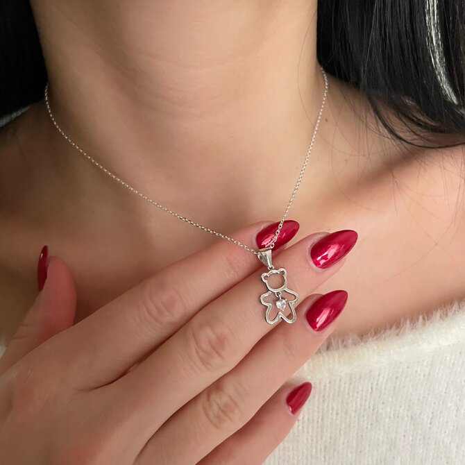 Náhrdelník Medvídek se zirkonem stříbro 925 2886 stříbrná, stříbro