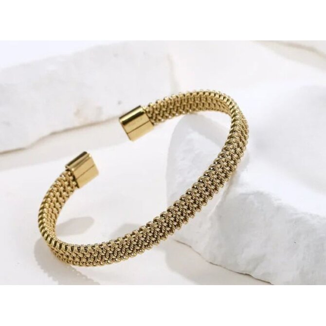 Náramek Weave chirurgická ocel 547 zlatá, 15 - 18 cm, chirurgická ocel