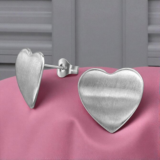 Náušnice Curved Hearts 1523 stříbrná, chirurgická ocel