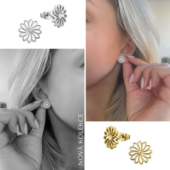 Náušnice Květiny gold 3082 zlatá, nerezová ocel