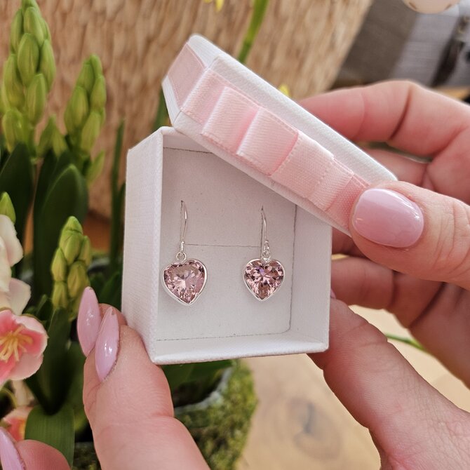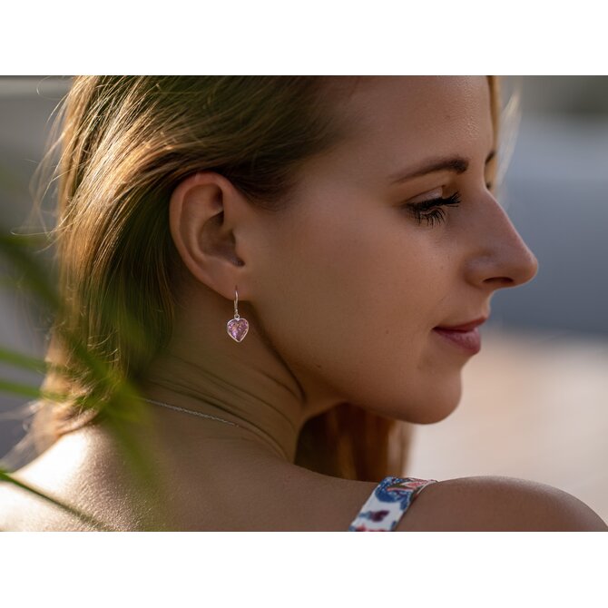 Náušnice Růžové Srdce stříbro 925 1215 růžová, křišťál