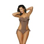 Misky s kosticemi, vyztužené, s pevnými v nich, neodnímatelné push up - velmi modelovat prsa, zvednout a vizuálně zvětšit. Plně odnímatelné popruhy, skvělé pro večerní výstřih a ramena. Obvod upevněn přezkou. Spodní část obleku je pohodlně svázána po stranách. Zpět s řezem mírně odhalujícím hýždě (brazilský typ). Pokud chcete, můžete si dát na pareo a jít na pláž pohodlně. Model šitý z italské elastické tkaniny.