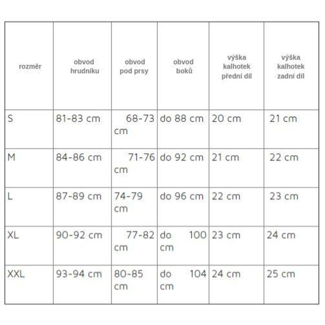 Vyztužené košíčky s push-up (k dostání ve velikostech S, M, L, XL),neodnímatelné.