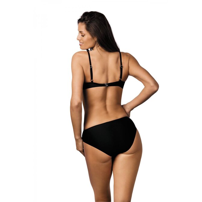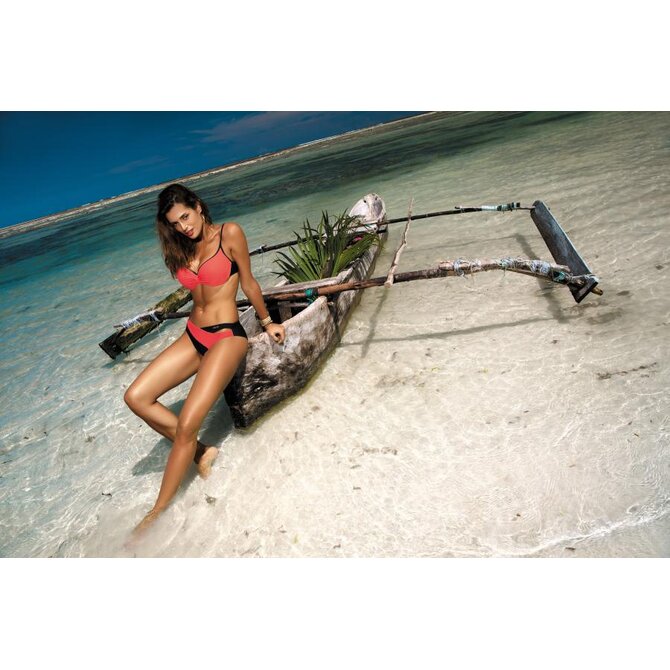 Dvoubarevné plavky, které vypadají mimořádně žensky.Košíčky vyztužené, s kosticemi a trvale vestavěnou subtilní výsuvnou výplní (dostupné od velikosti S do XL včetně) dokonale sbírá prsa do výstřihu, zvedá je a zvětšuje. Díky mírně vestavěnému centru je podprsenka velmi pohodlná a bude fungovat i při plážových hrách. Popruhy s nastavitelnou délkou. Obvod upevněn přezkou.