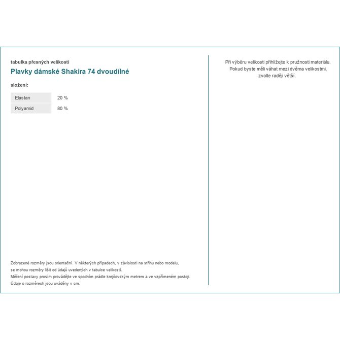 Složení: 80% polyamid, 20% elastan.
