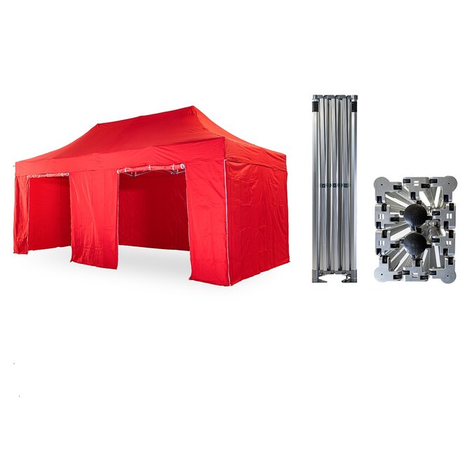 1x střecha + 4x boční plachta – 3x plná, 1x s dvěma dveřmi