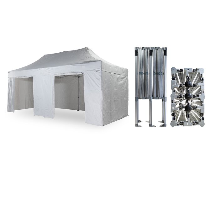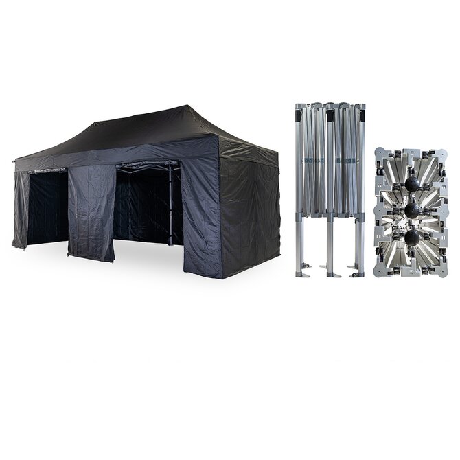1x střecha + 4x boční plachta – 3x plná, 1x s dvěma dveřmi