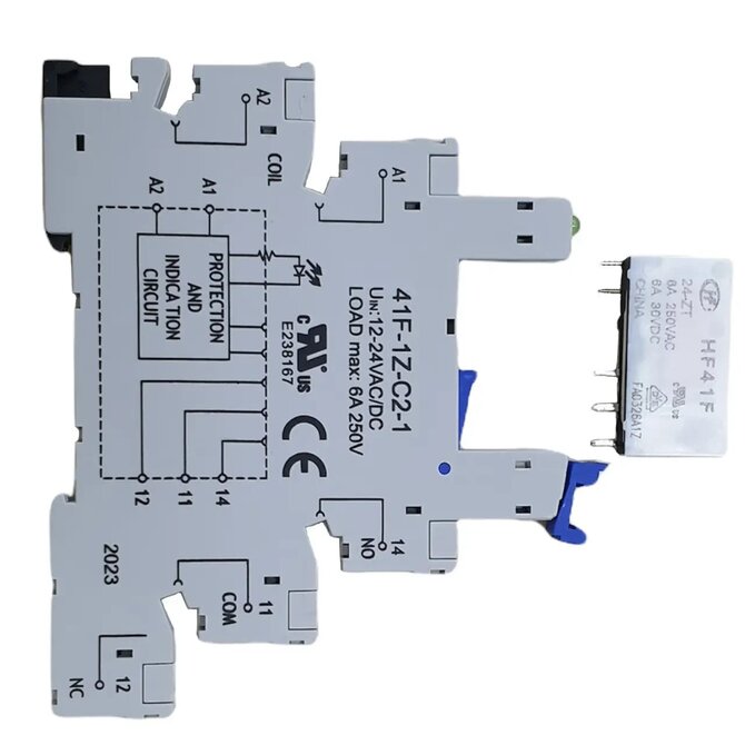 Oddělovací pomocné relé Reléový modul - patice + relé na din lištu, 6 A, NO+NC