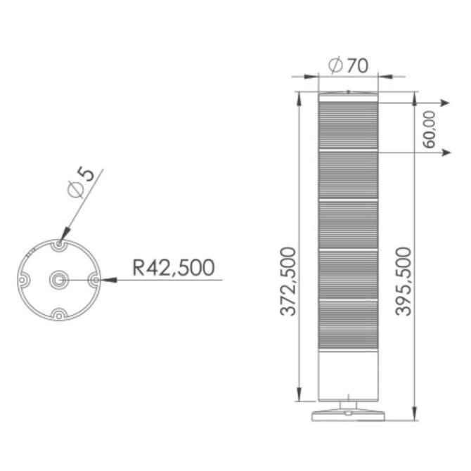 Pětipatrový signální sloup s povrchovou montáží a 10cm trubkou 12-24V AC/DC