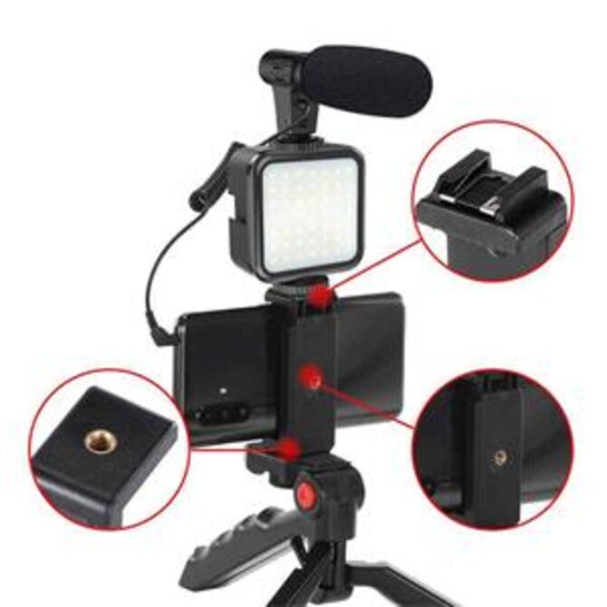 PLATINET Omega VLOG 4 V 1 SADA ( MIKROFON; SVĚTLO; DRŽÁK TELEFONU NA STATIVU) + 3,5 JACK NA USB C ADAPTÉR