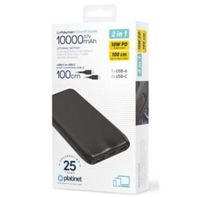 PLATINET POWER BANK 10000 MAH 3,7V 37Wh 10W 2xUSB-C 1xUSB-A BLACK