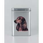 Plechová dóza na potraviny s obrázkem psa plemene jezevčík