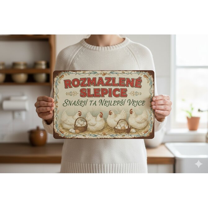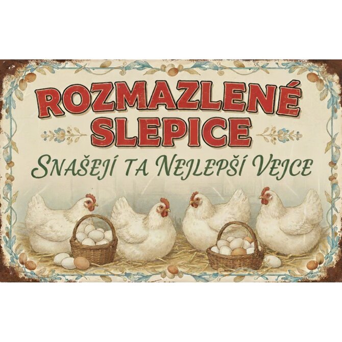 Plechová retro cedule - Rozmazlené slepice Provedení: Hliník: 30 x 20 cm