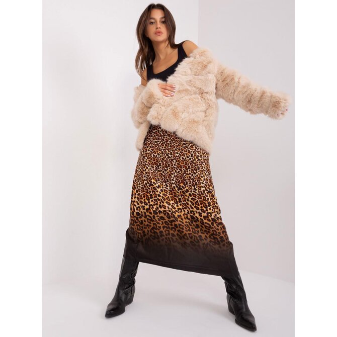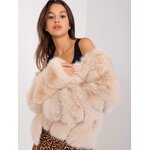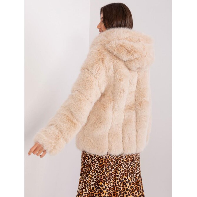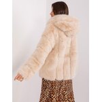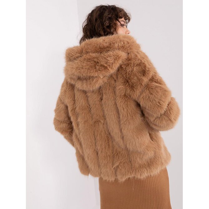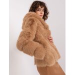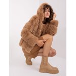 Přechodová bunda z eko kožešiny s kapucí a s podšívkou, zapínání na háček ve světle hnědé barvě