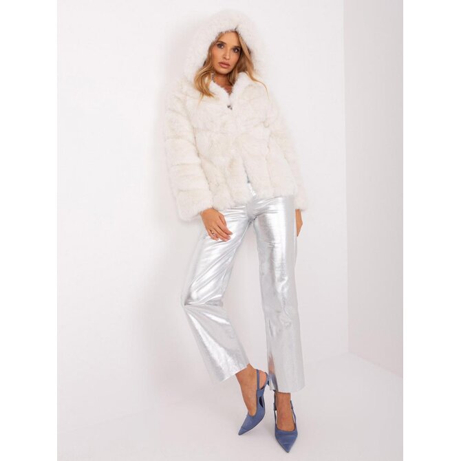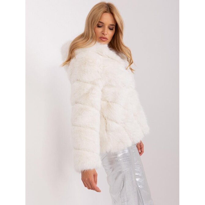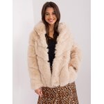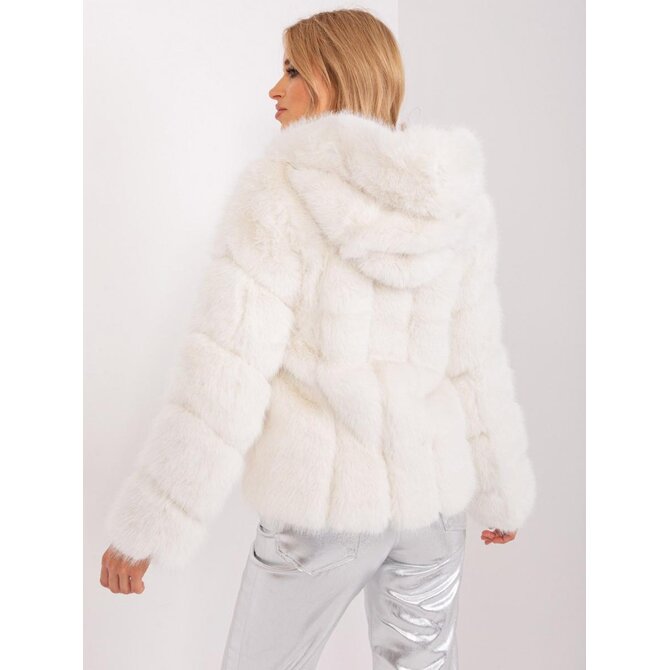 Přechodová bunda z eko kožešiny s kapucí a s podšívkou, zapínání na háček v barvě ecru