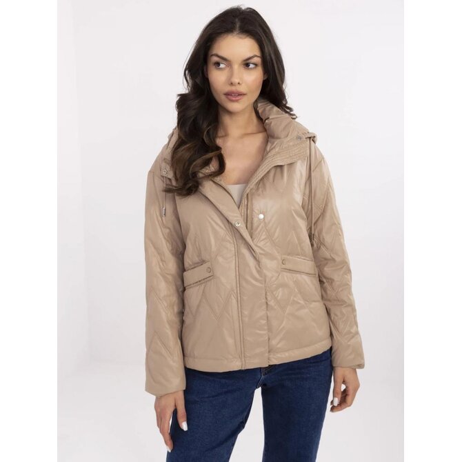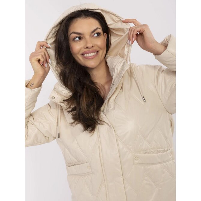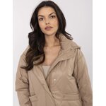 Béžová přechodná bunda s odnímatelnou kapucí; s podšívkou a zateplením