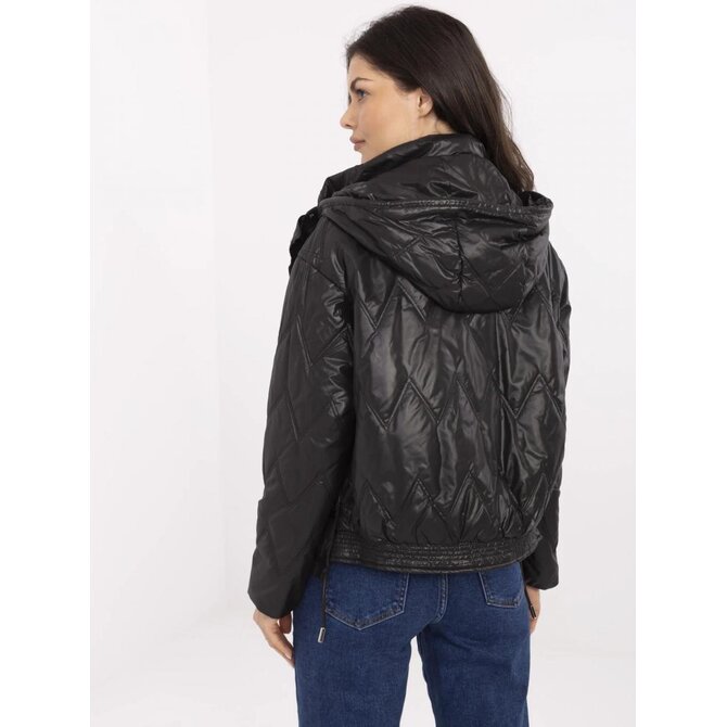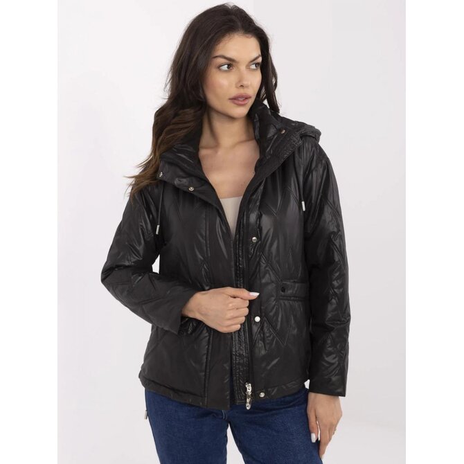 Černá přechodná bunda s odnímatelnou kapucí; s podšívkou a zateplením