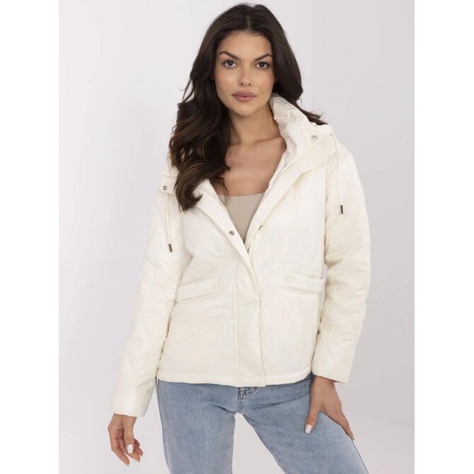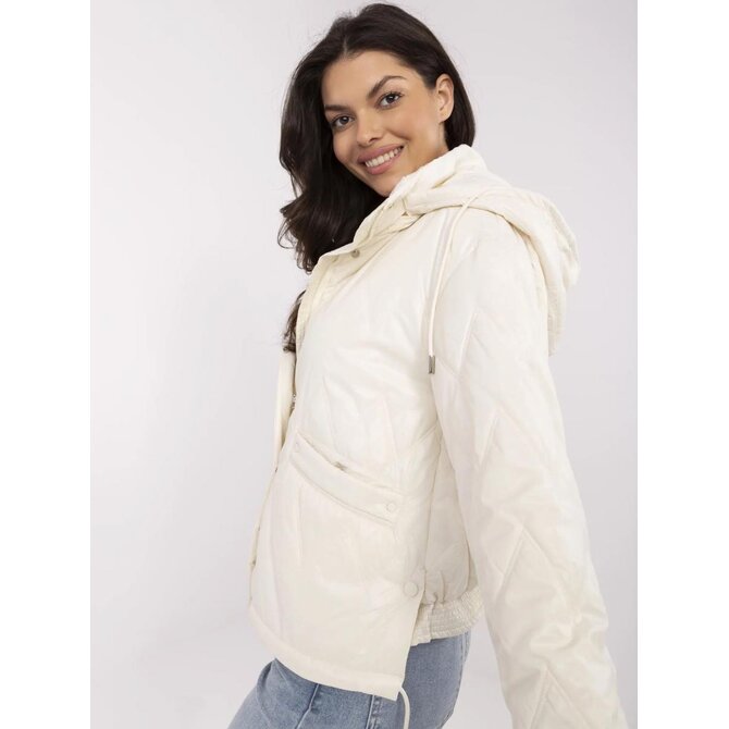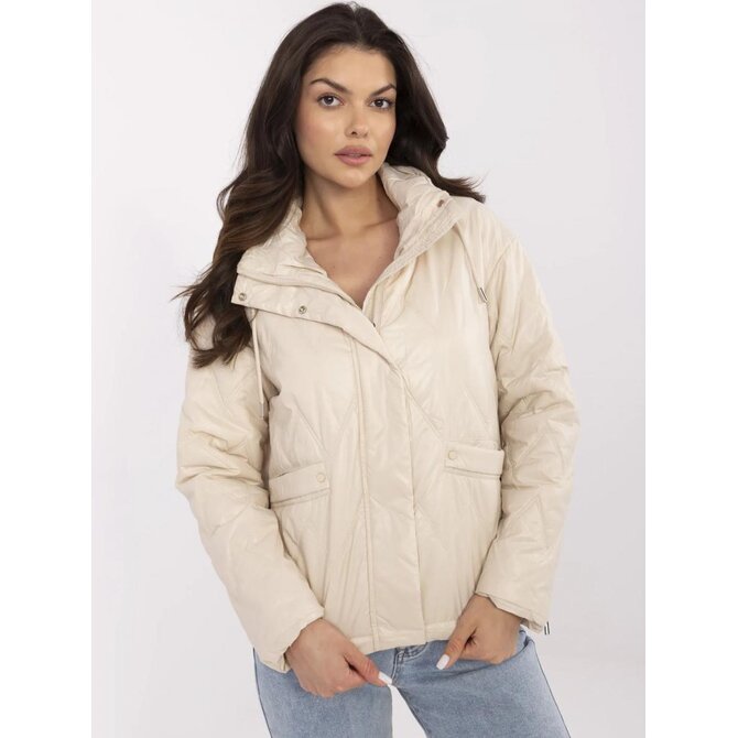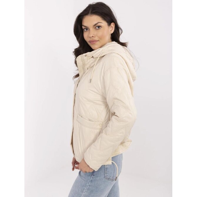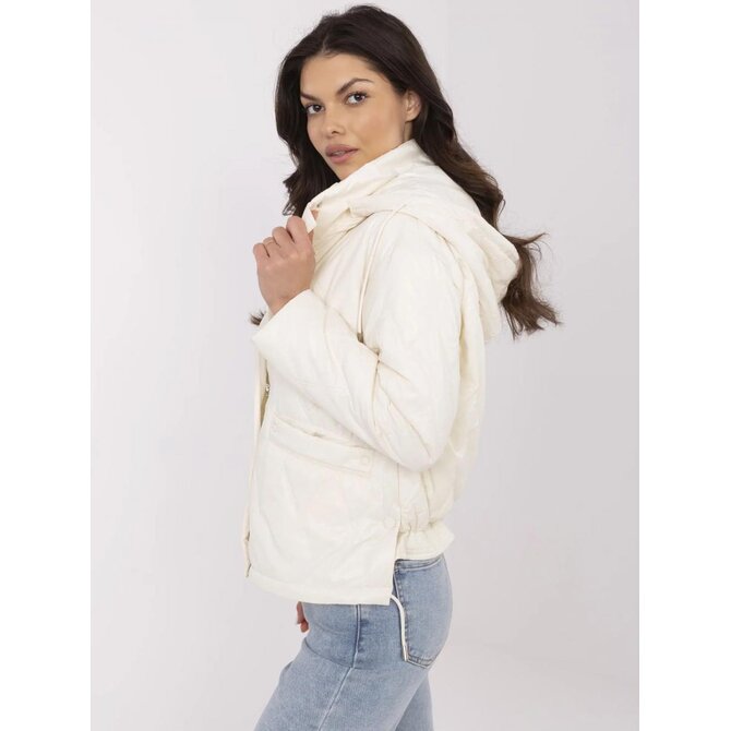 Krémová přechodná bunda s odnímatelnou kapucí; s podšívkou a zateplením