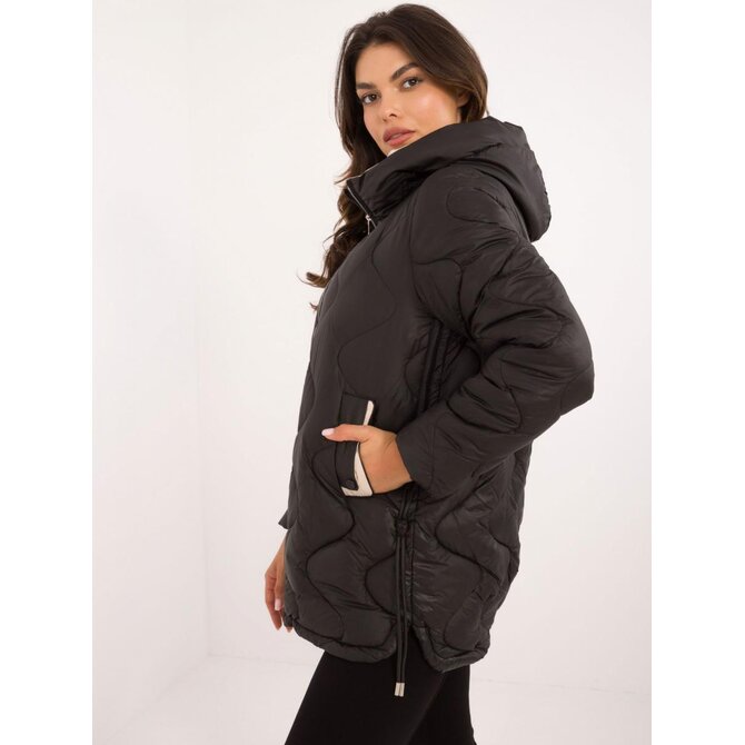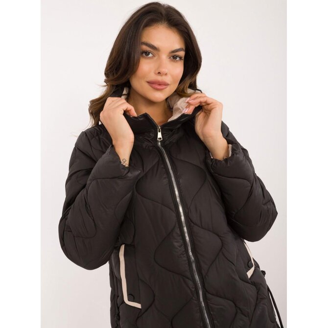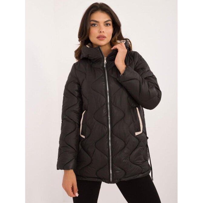 Prošívaná přechodná bunda v černé barvě s kapsami