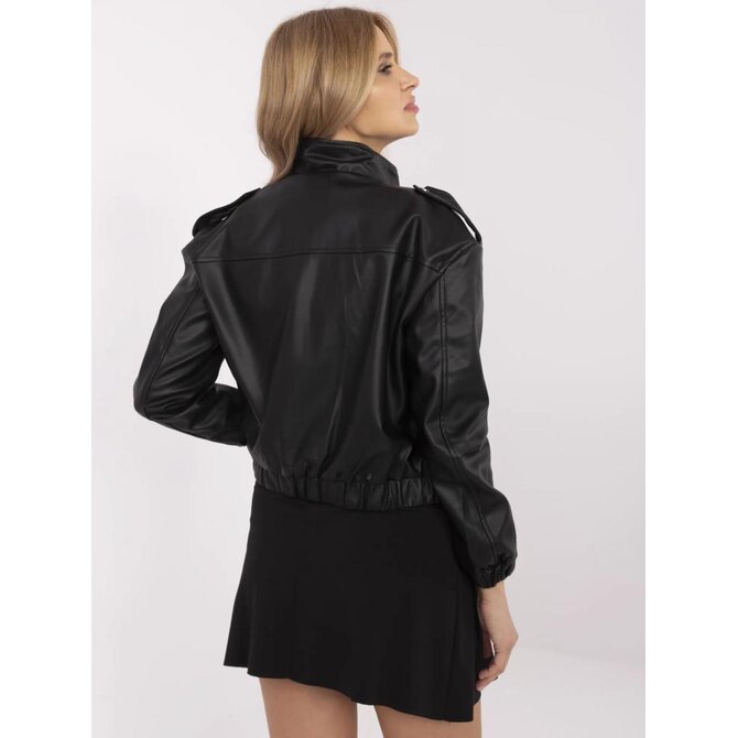 Černá krátká bunda z ekokůže s kapsami,