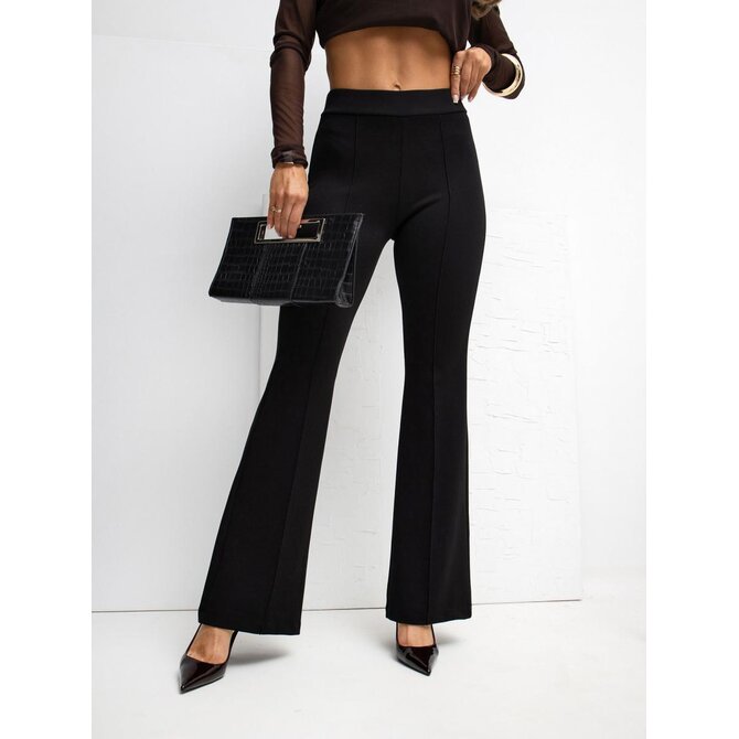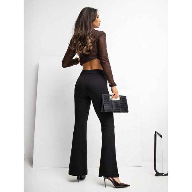 Černé rozšířené kalhoty teplákového typu bez zapínání, s vysokým pasem a