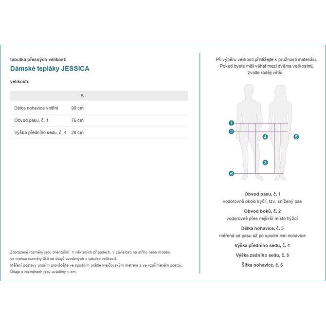 Rozměry kalhot ve velikosti S, měřeno naplocho: šířka pasu - 38 cm, délka nohavice - 99 cm, výška pasu - 28 cm
