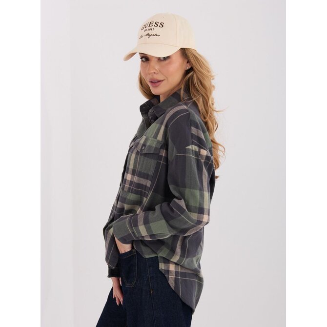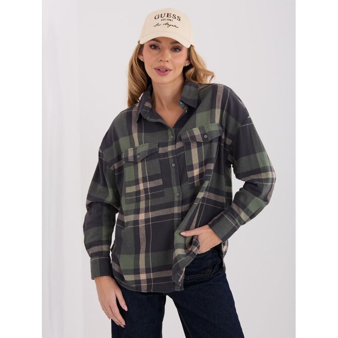 Khaki bavlněná kostkovaná košile