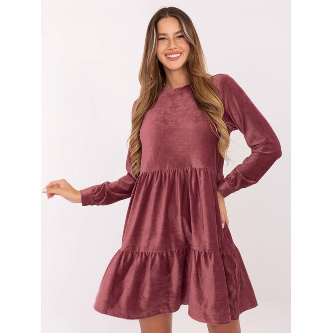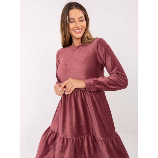 Tmavě růžové sametové šaty ke kolenům