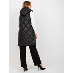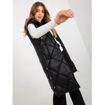 Dlouhá prošívaná vesta z eko-kůže v černé barvě s kapucí