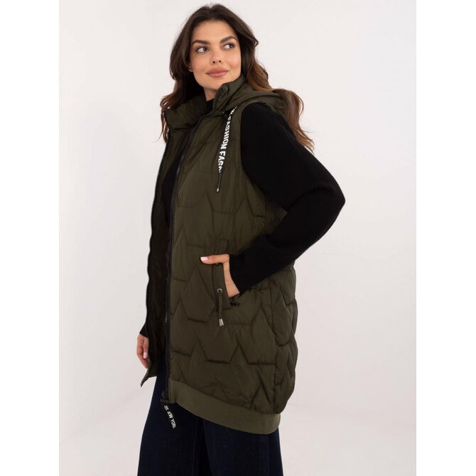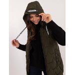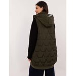 Dámská prošívaná dlouhá vesta s odnímatelnou kapucí v khaki barvě;