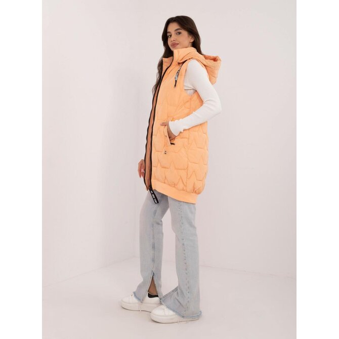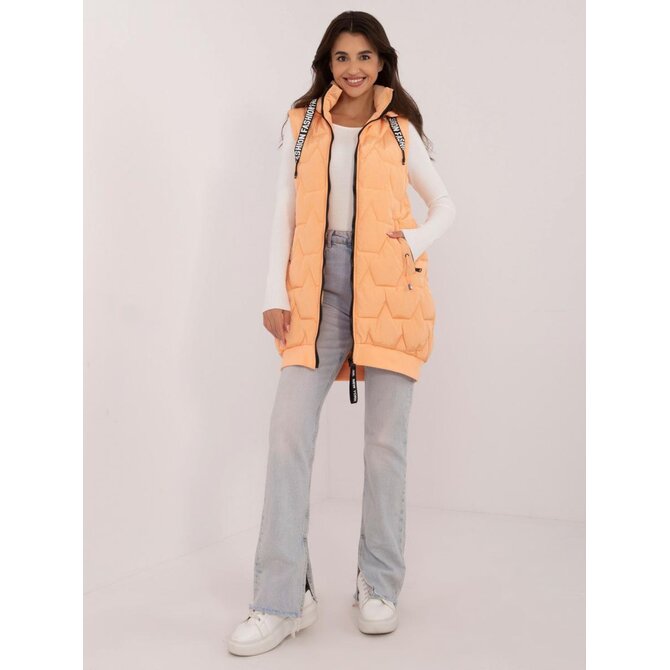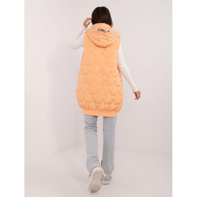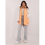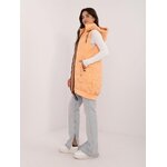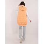 Dámská prošívaná dlouhá vesta s odnímatelnou kapucí ve světleoranžové barvě;