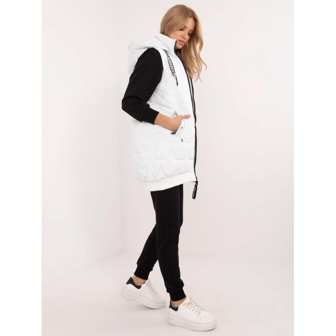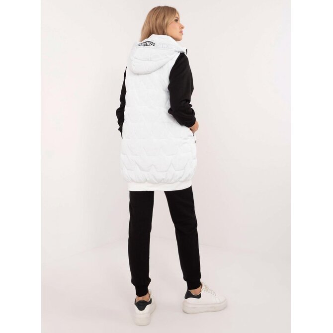 Dámská prošívaná dlouhá vesta s odnímatelnou kapucí v bílé barvě;